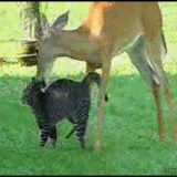 deer grooms cat